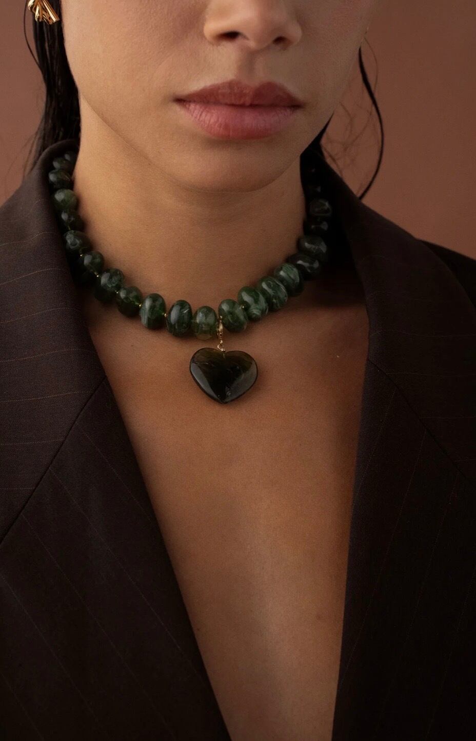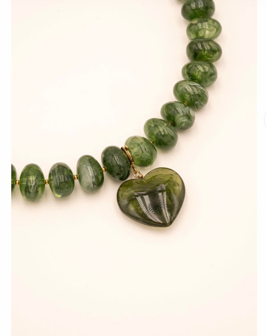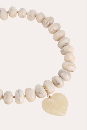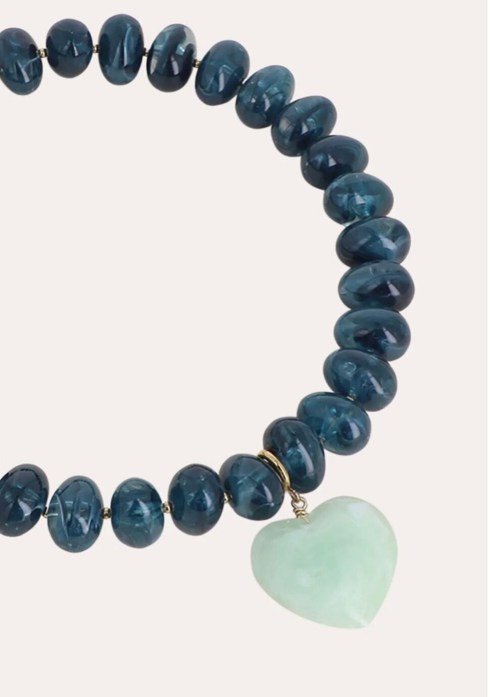 大きなカラー樹脂ビーズと取り外し可能なハート型の樹脂ペンダントを組み合わせたネックレスです。