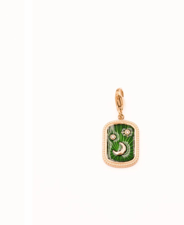 月と 2 つの星が付いたエナメル プレート型のペンダントで構成されたチャームです。