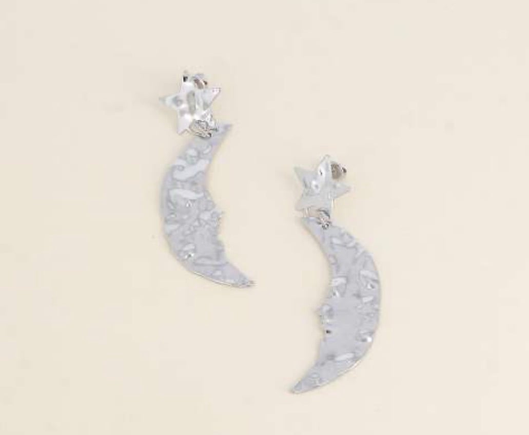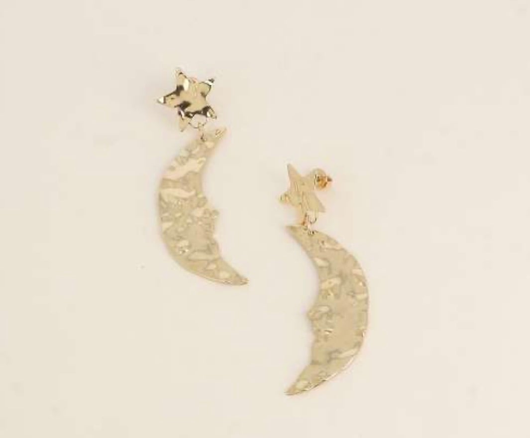 槌目模様の月と星をあしらったのやや大きめのドロップピアス