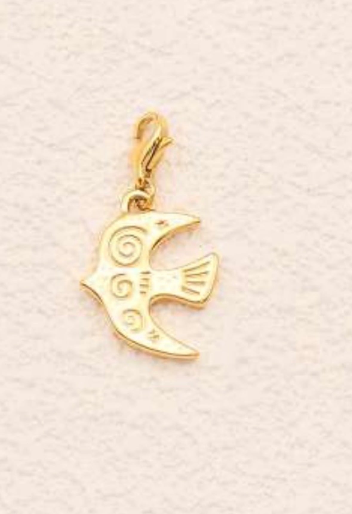 質感のある鳥のペンダントが付いたステンレススチール製のチャーム。